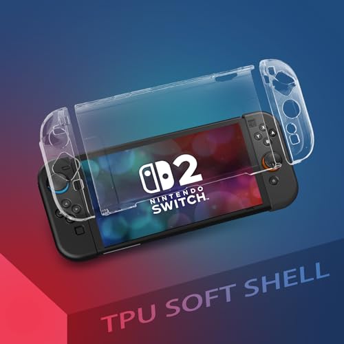 Transparent Protection Combo for Style & Defense: Clear PC console cover maintains the Switch 2’s original design with precise cutouts for all buttons and ports. The set includes TPU Joy-Con cases for impact resistance and silicone handle protectors for non-slip grip, both designed for easy installation and removal
