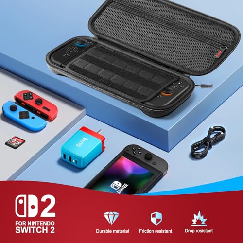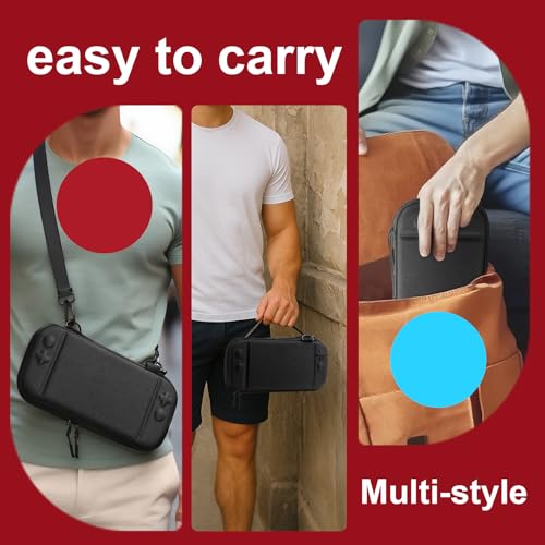 Crossbody Carrying Case with Triple Protection: Waterproof Oxford fabric exterior, shock-resistant EVA hard shell, and soft anti-scratch plush lining shield your Switch 2 from rain, drops, and scratches. Adjustable shoulder strap (extends to 51″) allows hands-free crossbody carry, while the wrist strap offers quick grab-and-go convenience