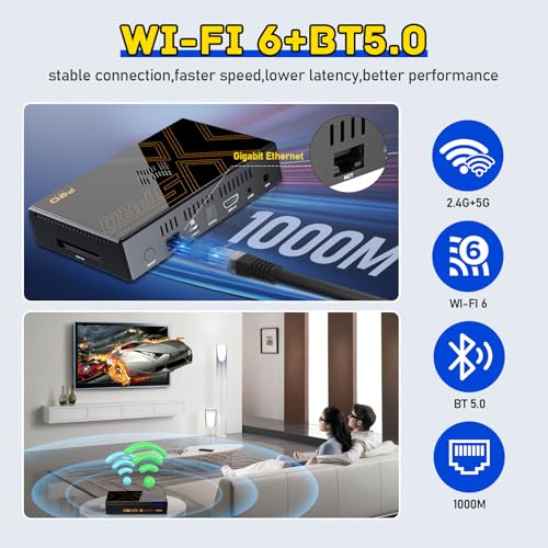 【Advanced Connectivity】The console features Wi-Fi 6, supporting dual-band connectivity (2.4GHz and 5GHz), ensuring faster and more stable internet connections. Bluetooth 5.0 enhances connectivity with various devices, while Gigabit Ethernet guarantees speedy downloads and uploads. Compact and portable, the X5 PRO is perfect for gaming on the go.
