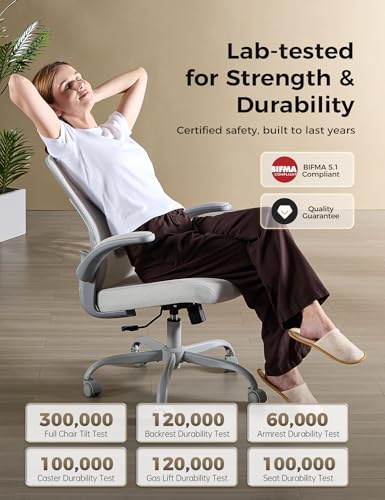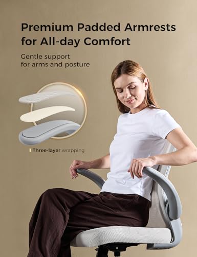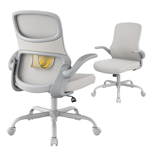 Office Chair, Mesh Ergonomic Desk Chairs, Lumbar Support, Adjustable Height, Flip-up Armrests, Swivel Function and Smooth-Rolling Wheels for Home, Office and Gaming (Gray)