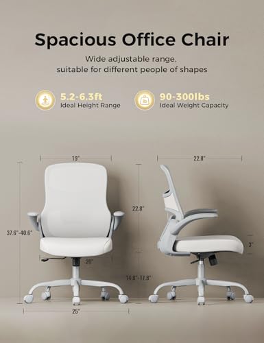 Specification: Office Chair, Mesh Ergonomic Desk Chairs, Lumbar Support, Adjustable Height, Flip-up Armrests, Swivel Function and Smooth-Rolling Wheels for Home, Office and Gaming (Gray)